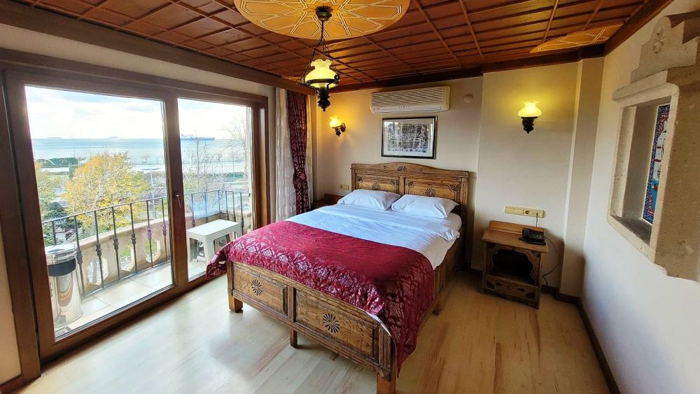 On the second or third floors with balcony. You can watch sea gulls and fishing boats or wonderfull sun-rising on the Marmara Sea from your balcony. Also, you can see Asia and Princes' Islands